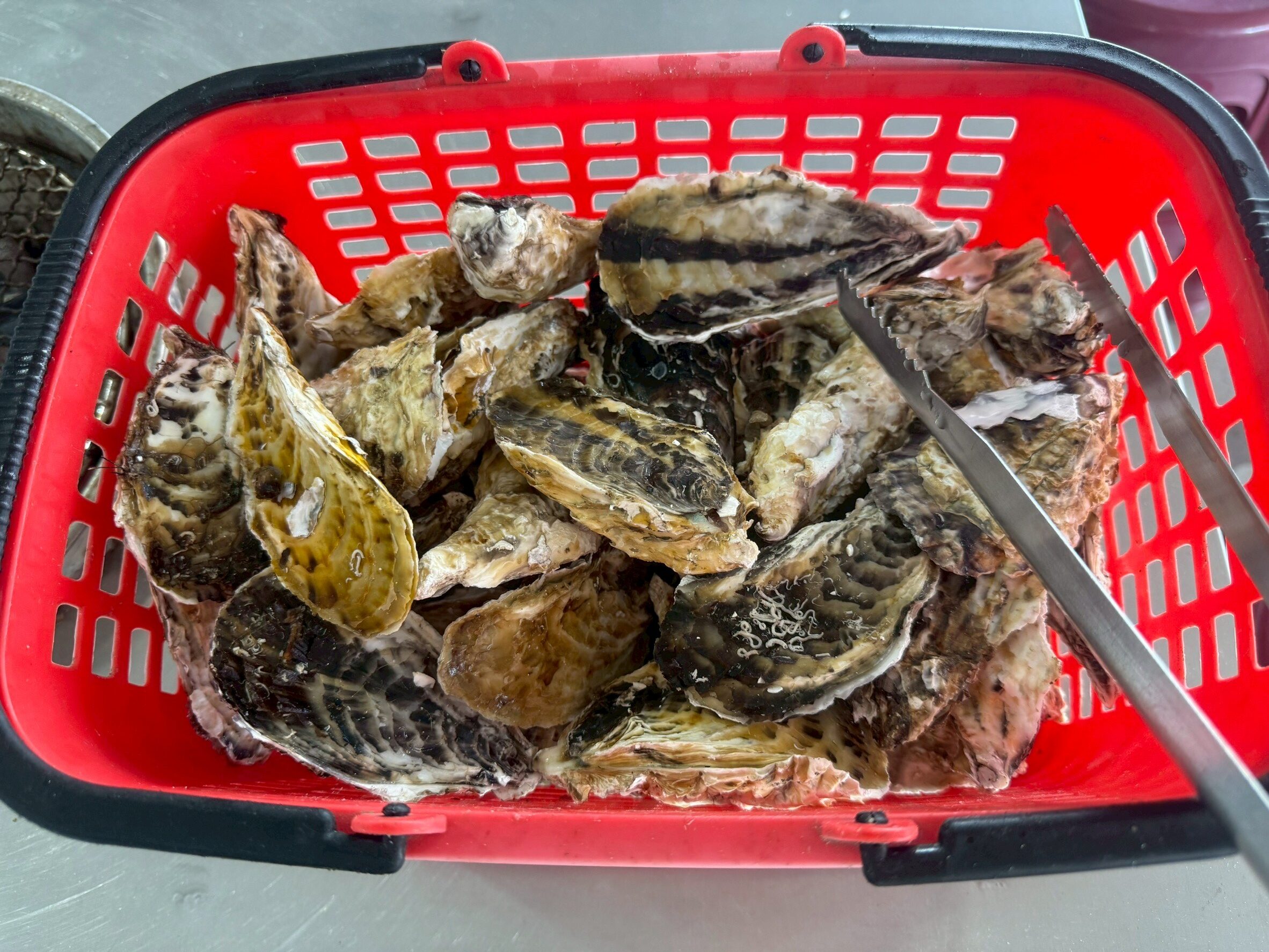 先說說這主角——牛奶蚵。店家強調產地直送,果然名不虛傳,每顆蚵仔都飽滿肥美,烤的時候滋滋作響,光看就讓人食指大動。自己動手烤,樂趣十足,大概烤個兩三分鐘,看到蚵殼微微張開,就可以準備開動啦!一口咬下,鮮甜海味在嘴裡爆發,完全沒有腥味,只有滿滿的幸福感。而且,不用擔心吃不夠,老闆阿莎力,桶子空了,直接再給你補滿,就是要讓你吃到過癮!