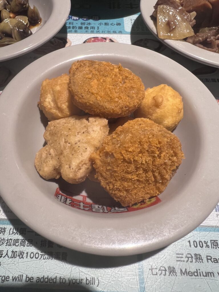 熱炒區更是驚喜連連,滷豬腳、三杯雞、糖醋排骨…都是些家常菜,但味道卻不馬虎,阿嬤的味道直接湧上心頭。炸物區的炸雞塊,雖然不是什麼高級貨,但炸得酥脆,配點番茄醬,涮嘴到不行。