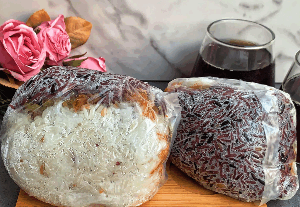 先說說這個雙色傳統飯糰,白米跟紫米交織在一起,光看就食慾大開。一口咬下,米飯Q彈有嚼勁,尤其是紫米,越嚼越香,搭配著肉鬆、菜脯、酸菜、油條、滷蛋這些經典配料,味道鹹甜交織,比例也調得剛剛好,不會過鹹或過甜,是很耐吃的古早味。再來,油條雖然不是酥脆的那種,但吸飽了米飯的水分,反而變得軟Q,增添了口感層次,這點我很喜歡。