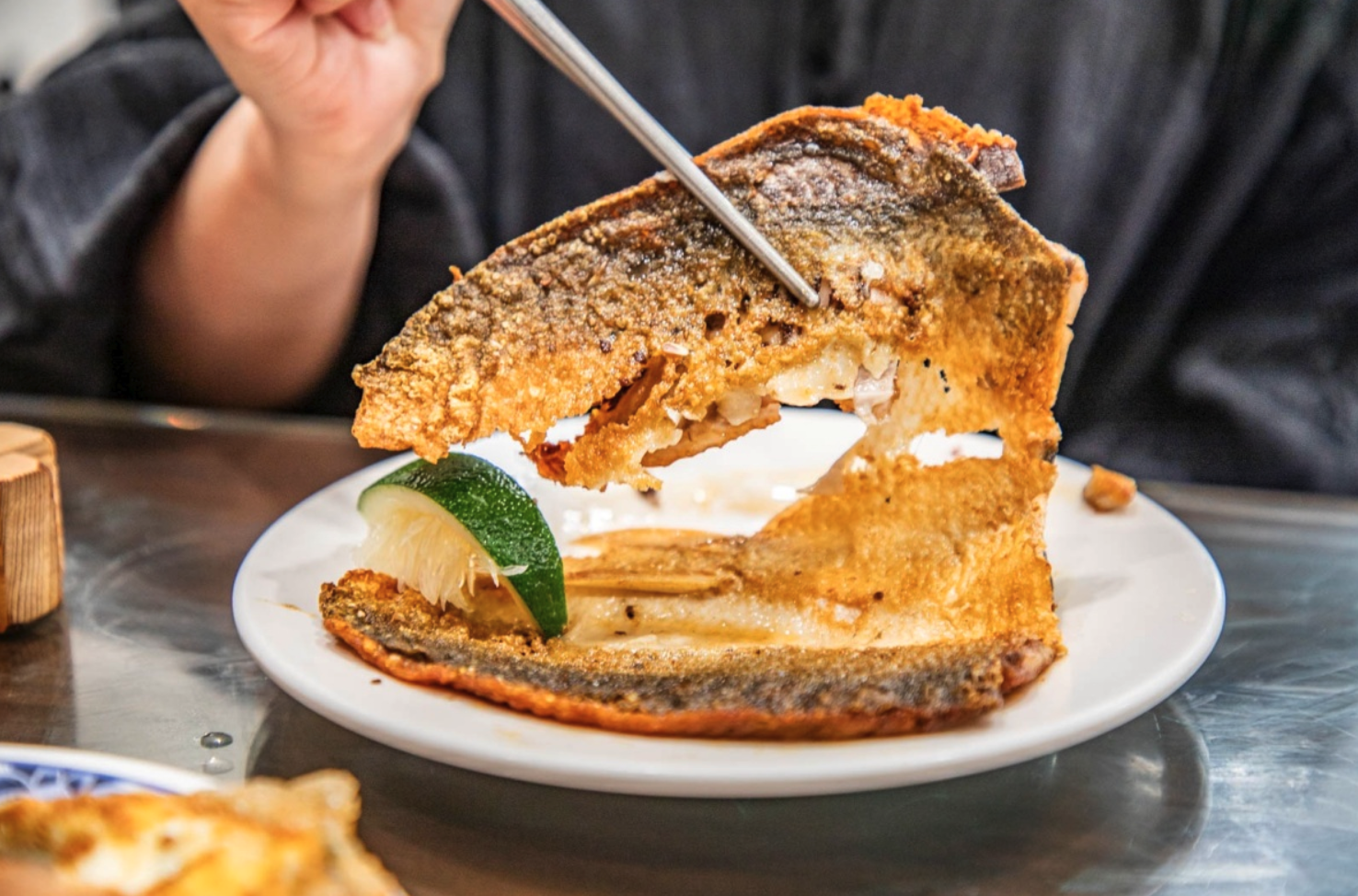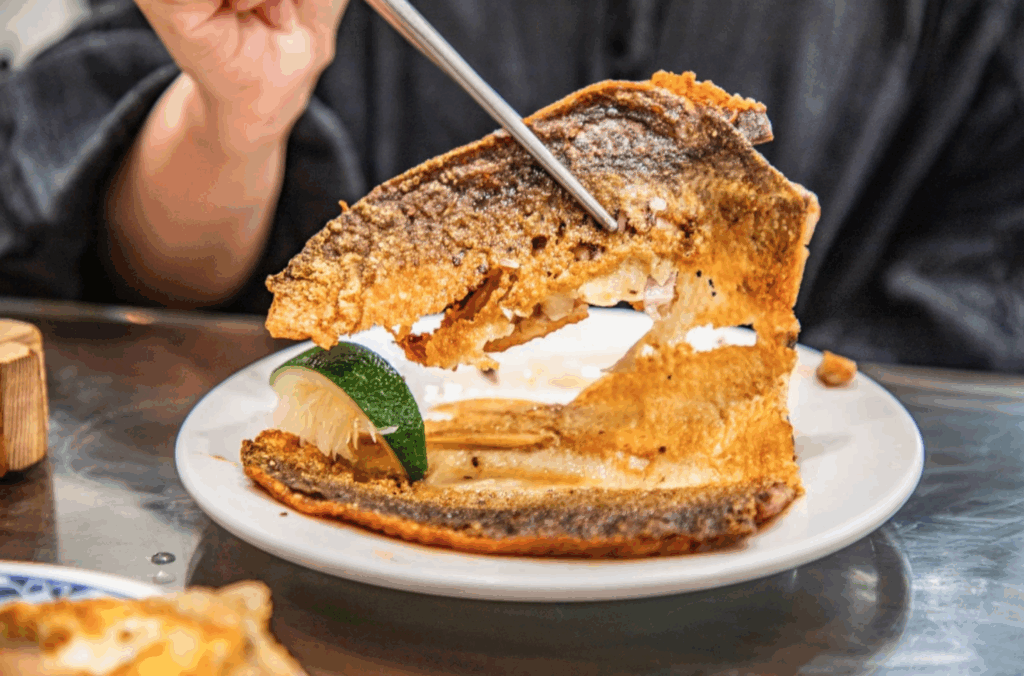 接著是煎虱目魚肚,這道我個人超愛!一份 150 元,價格雖然不算便宜,但份量給得很足。魚肚煎得恰到好處,外皮酥脆微焦,咬下去卡滋卡滋的,裡面的魚肉卻還是保持著鬆軟的口感,完全沒有腥味。店家只用薄鹽調味,更能吃出魚肉本身的鮮甜,擠上一點檸檬汁,或是沾點胡椒粉,風味更上一層樓!
