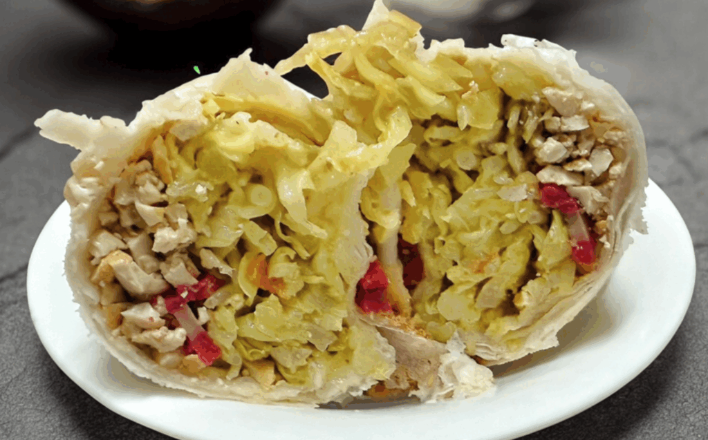 潤餅的內餡也是誠意滿滿。高麗菜的清甜、紅蘿蔔絲的爽脆、肉鬆的鹹香、蛋皮的滑嫩、酸菜的開胃、豆干的嚼勁、花生粉的濃郁,再加上畫龍點睛的紅燒肉和香菜——一口咬下,所有滋味在嘴裡爆發,層次感十足!而且份量紮實,一捲下肚,飽足感十足,完全就是小資族的一大福音。
