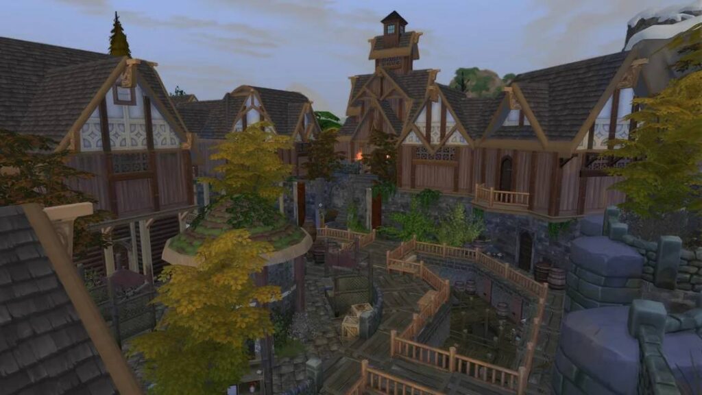 雖然這座城市誕生於《模擬市民4》的引擎,但 DeadgirlRot 透過細膩的手法,精準捕捉了裂谷城的中世紀奇幻氛圍。從斑駁的石砌建築、充滿歷史感的鵝卵石街道,到熙來攘往的市集廣場,每一處細節都讓人彷彿瞬間穿越到了《無界天際》的盜賊之都。